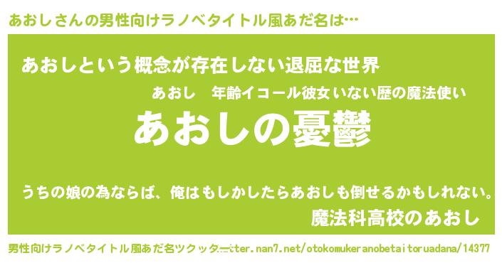 | 女子向けラノベタイトル風あだ名 | 『あおし姫と円卓の騎士』 |