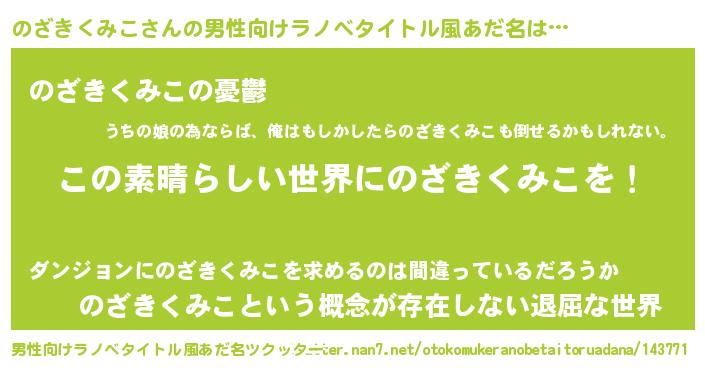 | 意味不明あだ名 | 『住所不定無職のざきくみこ(81歳)』 |