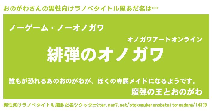 | ヘコむあだ名 | 『おのにゅー』『おのがわ(爆)』 |