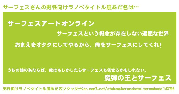 | ヘコむあだ名 | 『サーふぇ~』『サーフェス(笑)』 |