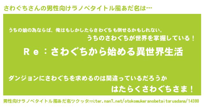 さわぐちさんの男性向けラノベタイトル風あだ名をツクッター!