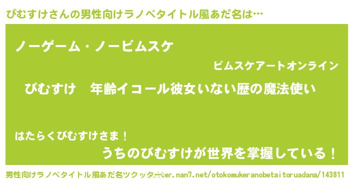 | ヘコむあだ名 | 『びむふぇ~』『酢こんぶ』『びむを』 |
