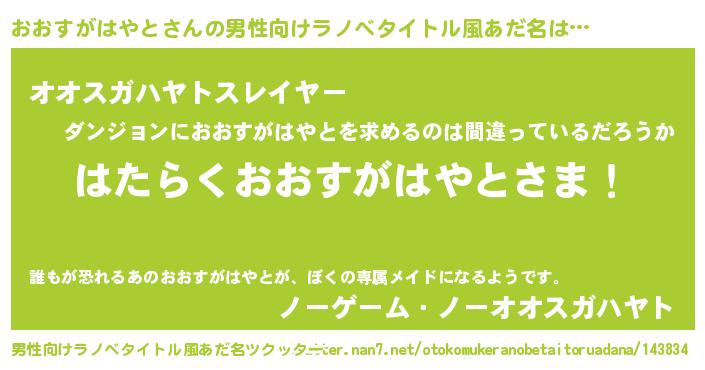 | 肩書あだ名 | 『おおすがはやとマネージャー』 |