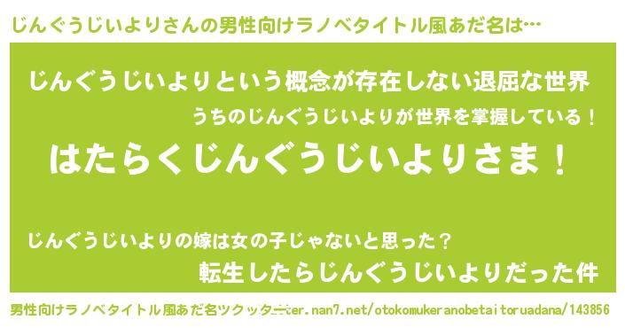 | 胡散臭い通販商品みたいなあだ名 | 『絶対に幸福をもたらす健康食品…その名も「じんぐうじいより」』 |