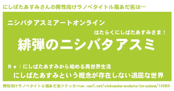 | 胡散臭い通販商品みたいなあだ名 | 『必ず成功する水晶球…その名も「にしばたあすみ」』 |