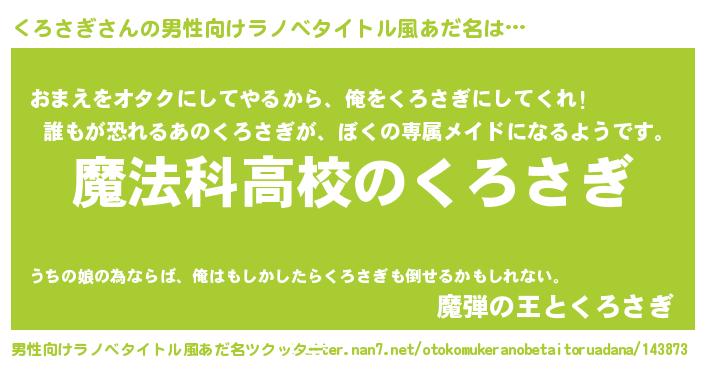 | 女子向けラノベタイトル風あだ名 | 『くろさぎなんてお断りですっ。』 |