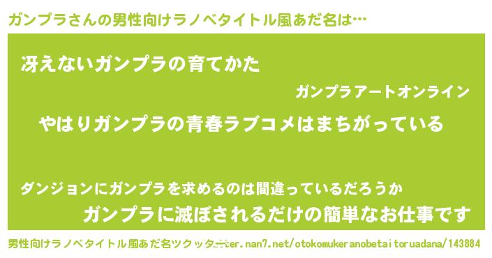 | 女子向けラノベタイトル風あだ名 | 『ガンプラの雑貨屋さん』 |