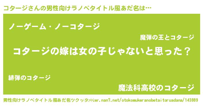 | 胡散臭い通販商品みたいなあだ名 | 『全米が絶賛したサプリメント…その名も「コタージ」』 |