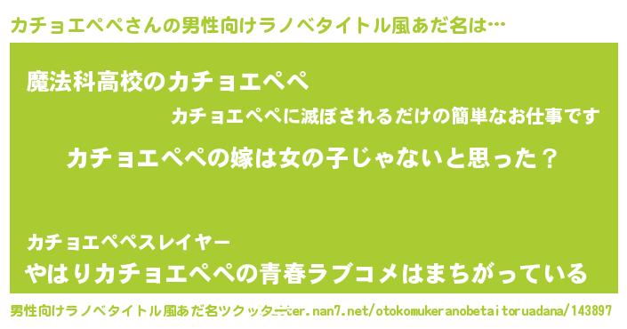 | 女子向けラノベタイトル風あだ名 | 『カチョエぺぺ様がみてる』 |