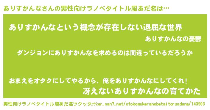 | 女子向けラノベタイトル風あだ名 | 『ありすかんなの卵を拾いまして』 |