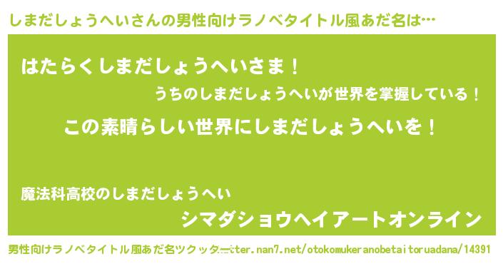 | 女子向けラノベタイトル風あだ名 | 『悪役しまだしょうへいに転生したようですが、知った事ではありません』 |