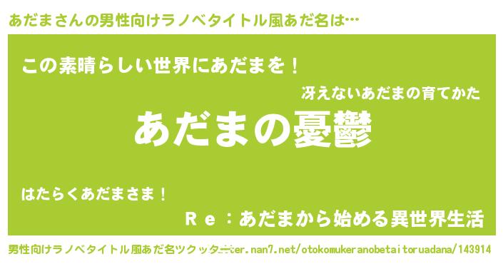 | 女子向けラノベタイトル風あだ名 | 『あだま姫と円卓の騎士』『闇のあだま』 |