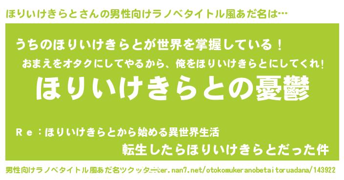 | 女子向けラノベタイトル風あだ名 | 『(仮)ほりいけきらとのやんごとなき事情』 |