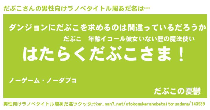 | 意味不明あだ名 | 『とにかく怪しいだぶこ』『自称だぶこ』 |