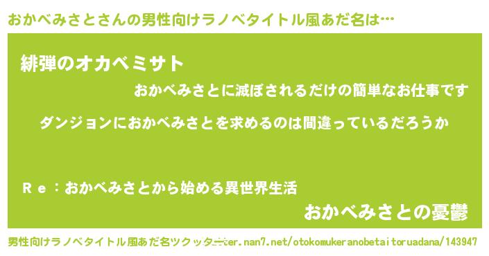 | 女子向けラノベタイトル風あだ名 | 『おかべみさとは平凡を望む』 |