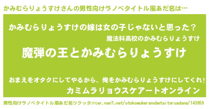 | ことわざ | 壁に耳あり障子に目あり『かみむらりょうすけに耳ありかみむらりょうすけに目あり』 |