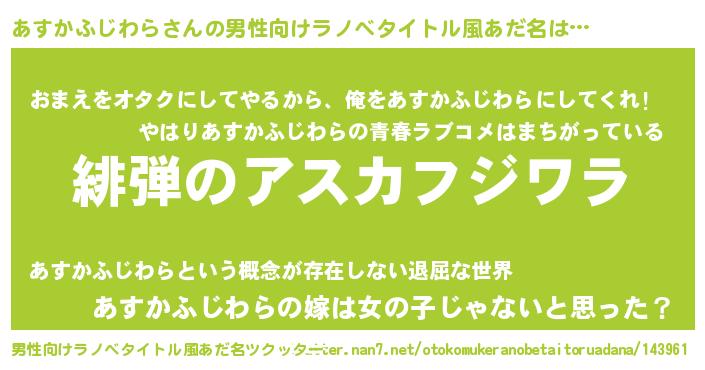| ヒーロー風カッコイイあだ名 | 『正義の使者あすかふじわら』 |