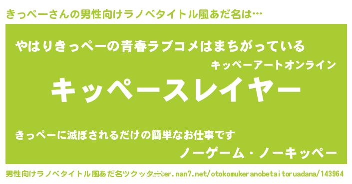 | 意味不明あだ名 | 『めかぶ科きっぺー属』『自称きっぺー』 |