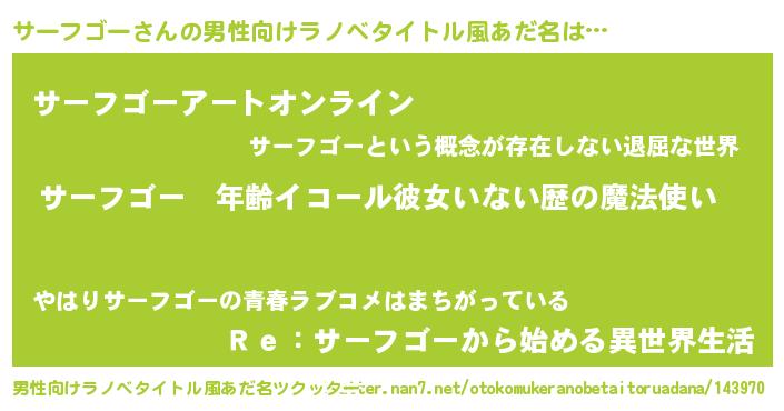 | 意味不明あだ名 | 『ヨモギ科サーフゴー属』 |