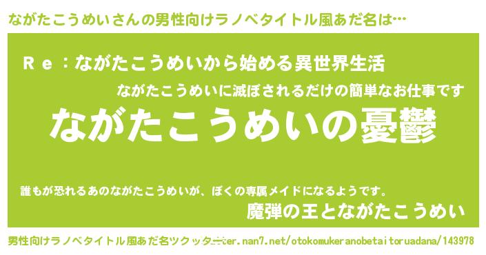 | 女子向けラノベタイトル風あだ名 | 『(仮)ながたこうめいのやんごとなき事情』 |