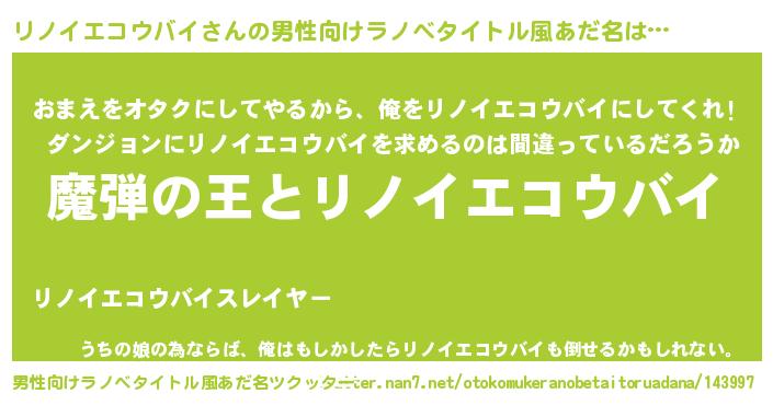 | 女子向けラノベタイトル風あだ名 | 『リノイエコウバイが死なない童話 林檎のリノイエコウバイの診療簿』 |