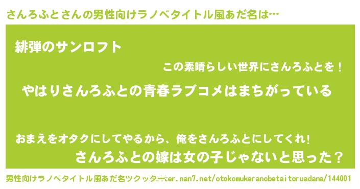 | 女子向けラノベタイトル風あだ名 | 『さんろふとの雑貨屋さん』 |