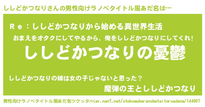 | 女子向けラノベタイトル風あだ名 | 『(仮)ししどかつなりのやんごとなき事情』 |
