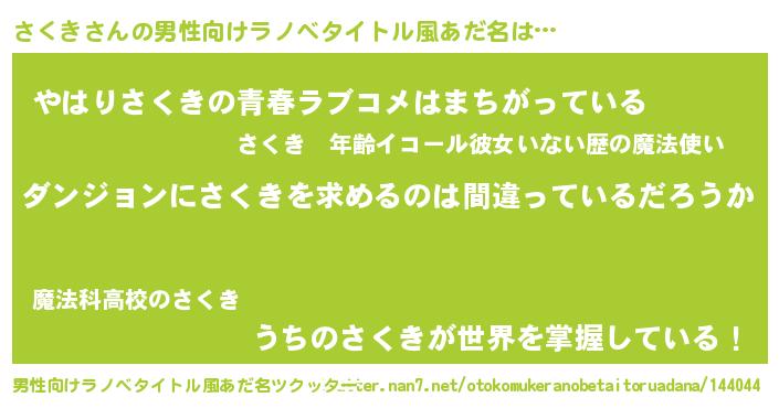 | 意味不明あだ名 | 『とにかく怪しいさくき』『自称さくき』 |