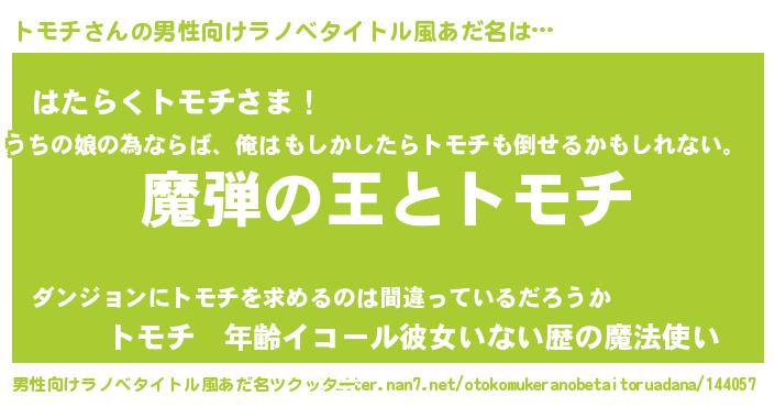 | 意味不明あだ名 | 『住所不定無職トモチ(41歳)』『自称トモチ』 |