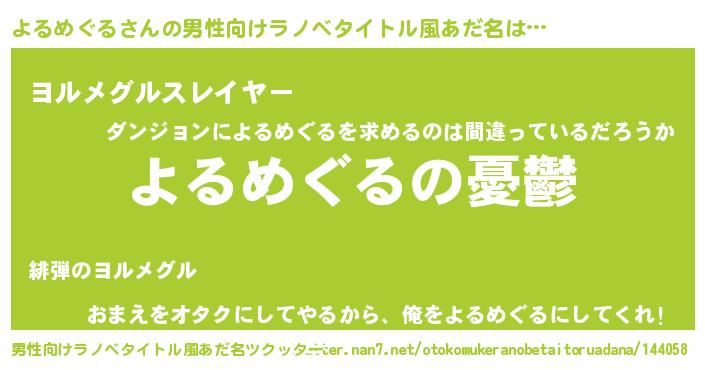 | 胡散臭い通販商品みたいなあだ名 | 『モテモテ間違いなし水晶球…その名も「よるめぐる」』 |