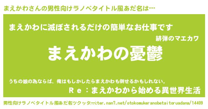 | 女子向けラノベタイトル風あだ名 | 『まえかわ姫と円卓の騎士』 |