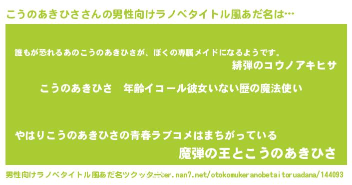 | ヒーロー風カッコイイあだ名 | 『ネオコウノアキヒサ』『仮面コウダー』 |