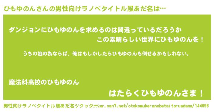 | ファンタジー風あだ名 | 『エターナルヒモユノンー』『ゼヒモトゥ』 |