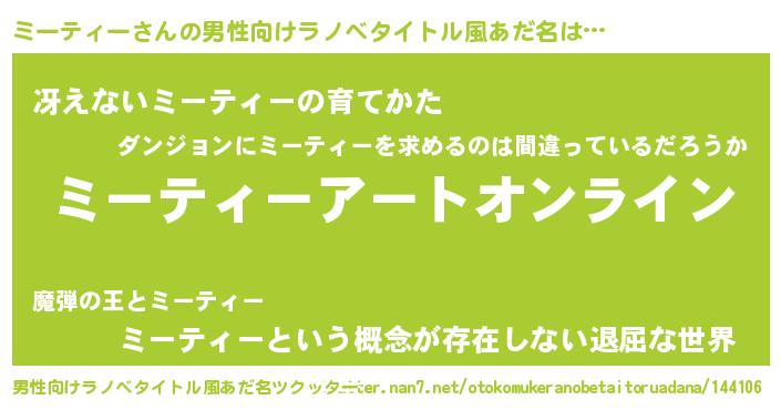 | 胡散臭い通販商品みたいなあだ名 | 『モテモテ間違いなし霊験あらたかなお札…その名も「ミーティー」』 |