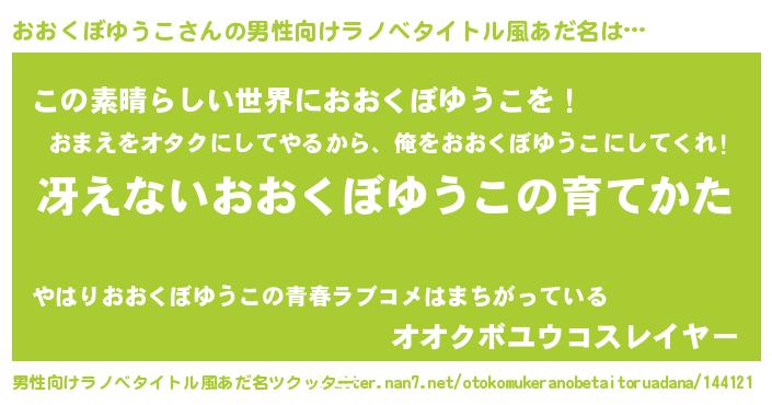 | 意味不明あだ名 | 『住所不定無職おおくぼゆうこ(39歳)』 |