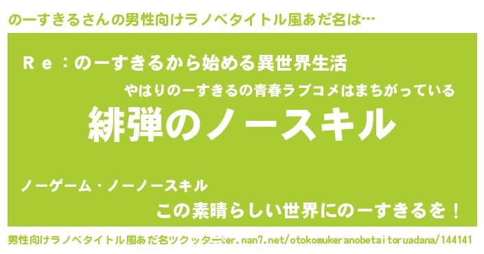 | ヒーロー風カッコイイあだ名 | 『超時空戦士ノースキル』『仮面ノーダー』 |
