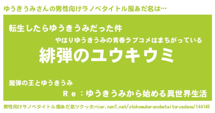 | ヒーロー風カッコイイあだ名 | 『超時空戦士ユウキウミ』『仮面ユウダー』 |