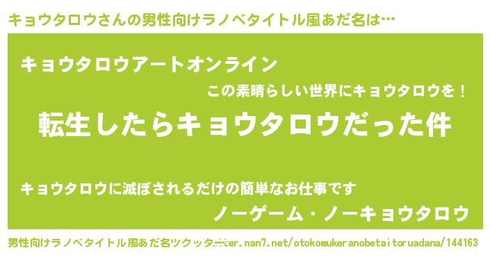 | ヒーロー風カッコイイあだ名 | 『スーパーキョウタロウ』『仮面キョダー』 |