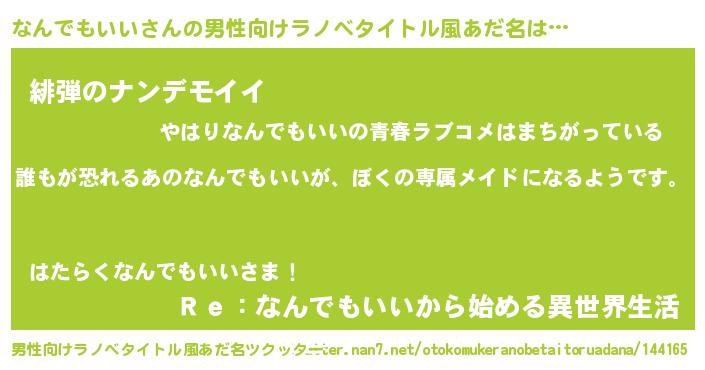 | 胡散臭い通販商品みたいなあだ名 | 『前代未聞の招き猫…その名も「なんでもいい」』 |