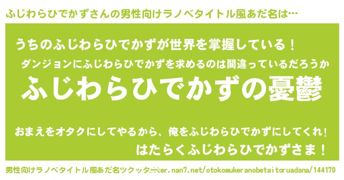 | 女子向けラノベタイトル風あだ名 | 『(仮)ふじわらひでかずのやんごとなき事情』 |