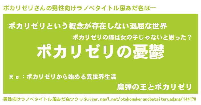 | 女子向けラノベタイトル風あだ名 | 『ポカリゼリ姫と円卓の騎士』 |