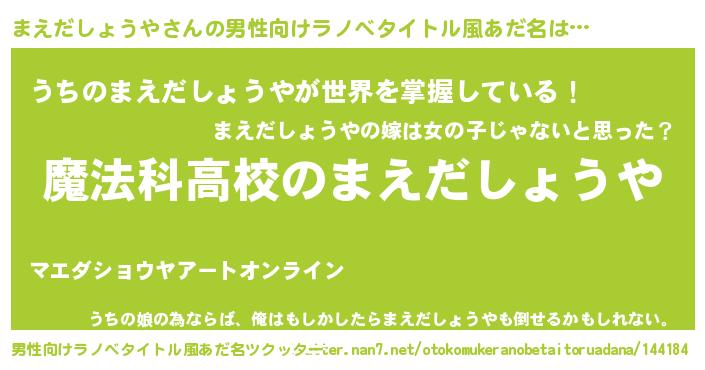 | 女子向けラノベタイトル風あだ名 | 『まえだしょうやなんてお断りですっ。』 |