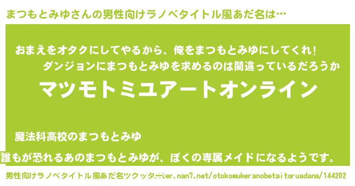 | 女子向けラノベタイトル風あだ名 | 『まつもとみゆ姫と円卓の騎士』 |