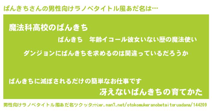 | 女子向けラノベタイトル風あだ名 | 『ばんきちは平凡を望む』 |