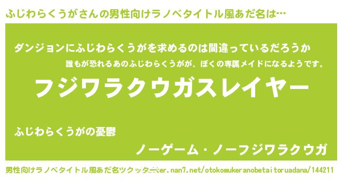 | ヒーロー風カッコイイあだ名 | 『暗黒騎士フジ』『ネオフジワラクウガ』 |
