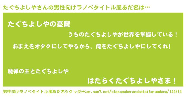 | 肩書あだ名 | 『たぐちよしや助教授』 |