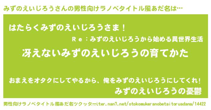 | 胡散臭い通販商品みたいなあだ名 | 『モテモテ間違いなし霊験あらたかなお札…その名も「みずのえいじろう」』 |