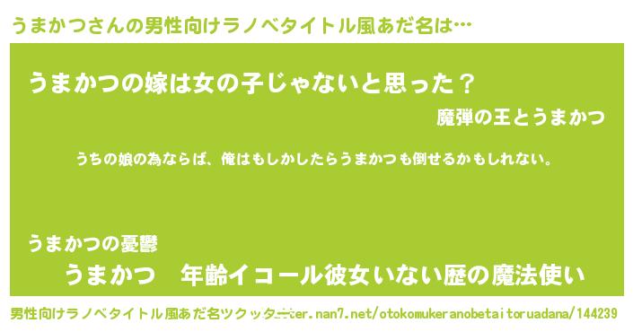 | 女子向けラノベタイトル風あだ名 | 『うまかつの婚約者』 |