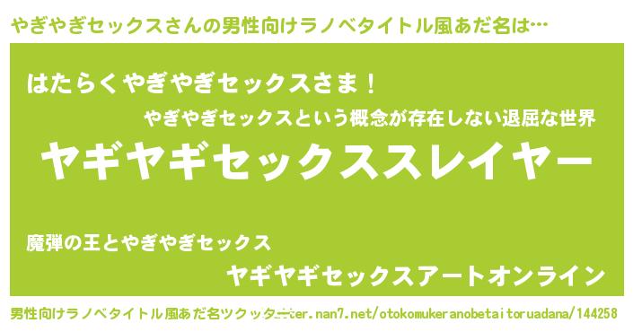 | 胡散臭い通販商品みたいなあだ名 | 『必ず成功する水晶球…その名も「やぎやぎセックス」』 |