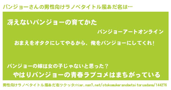 | 女子向けラノベタイトル風あだ名 | 『バンジョー夫妻のなれそめ』 |